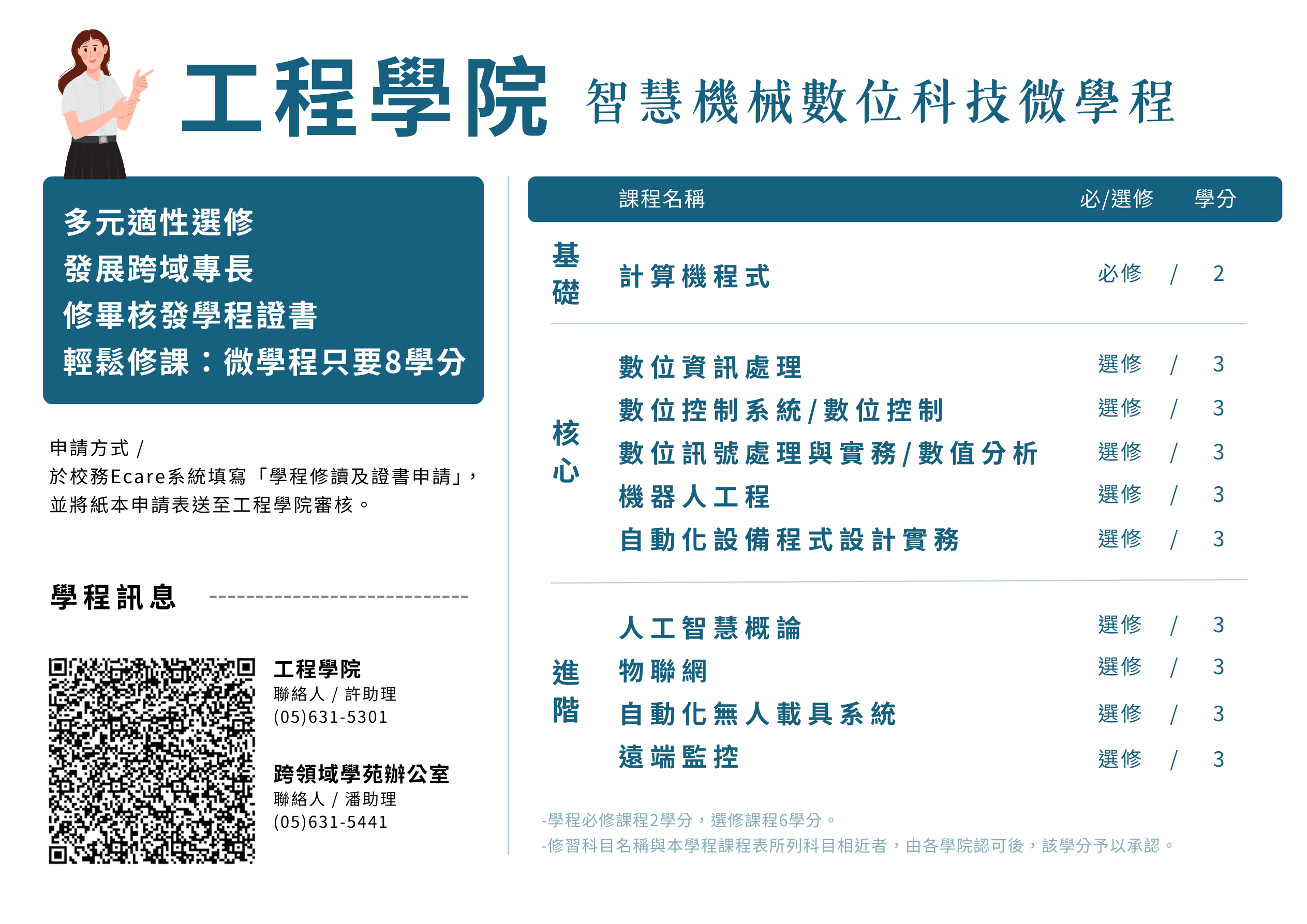 - 本學程設置細則詳情要點請見教務處學程訊息(https://nfuacademic.nfu.edu.tw/%e8%aa%b2%e7%a8%8b%e8%b3%87%e8%a8%8a/)。