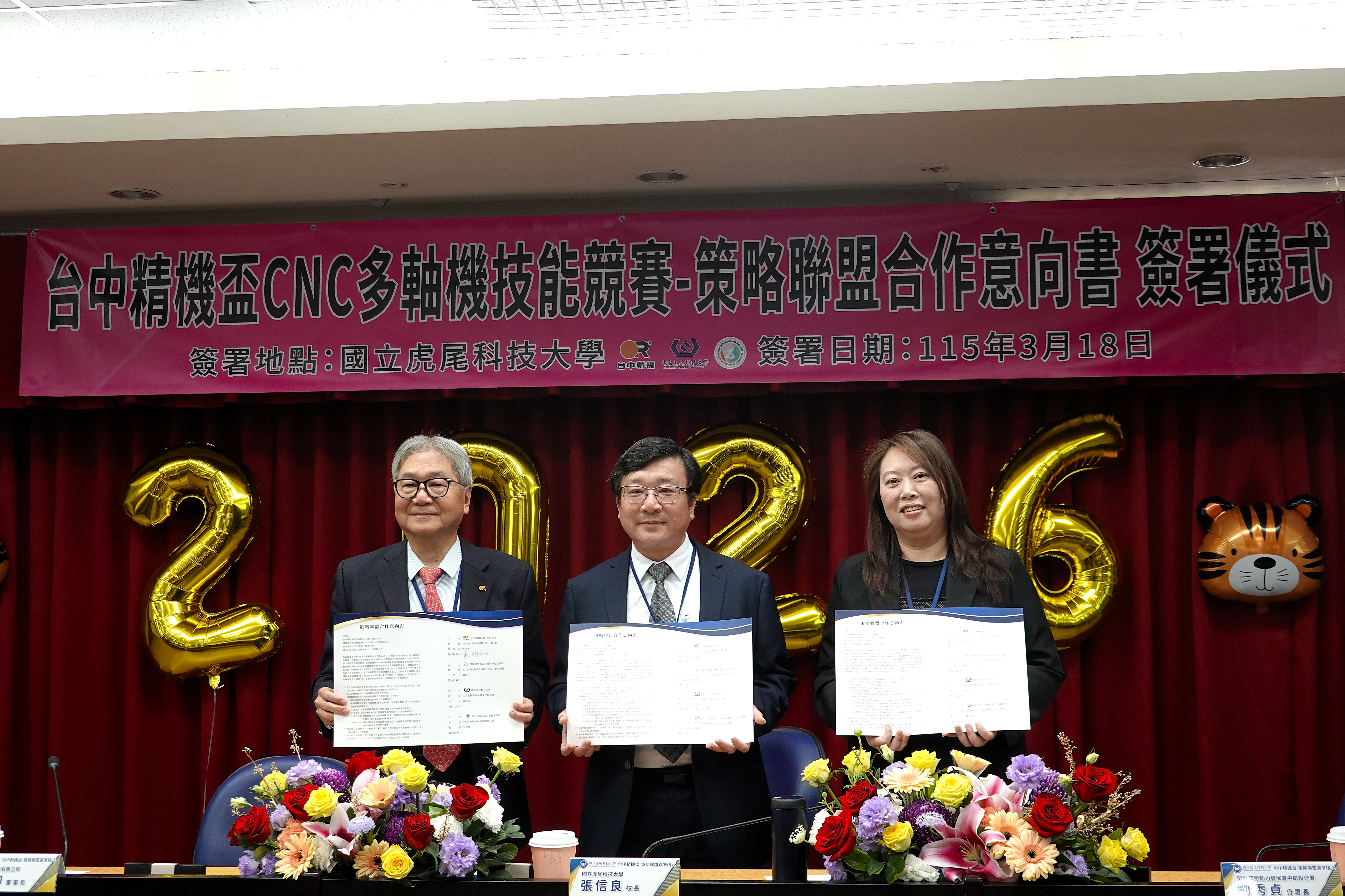 虎科大自111年起即與台中精機結盟合作,並於翌年辦理第一屆「台中精機盃CNC多軸機技能競賽」,透過多軸機技能競賽,以賽代訓培養學生實務能力。隨著產業對高階技術人才需求持續升溫,此次聯盟以虎科大為核心母艦,進一步聯合勞動部中彰投分署及多所具備多軸機設備的技職校院,正式將合作層級由「點」擴展至「面」,串聯全國從北到南18所技術型高中與科技大學,建構完整的技職人才垂直整合生態系。