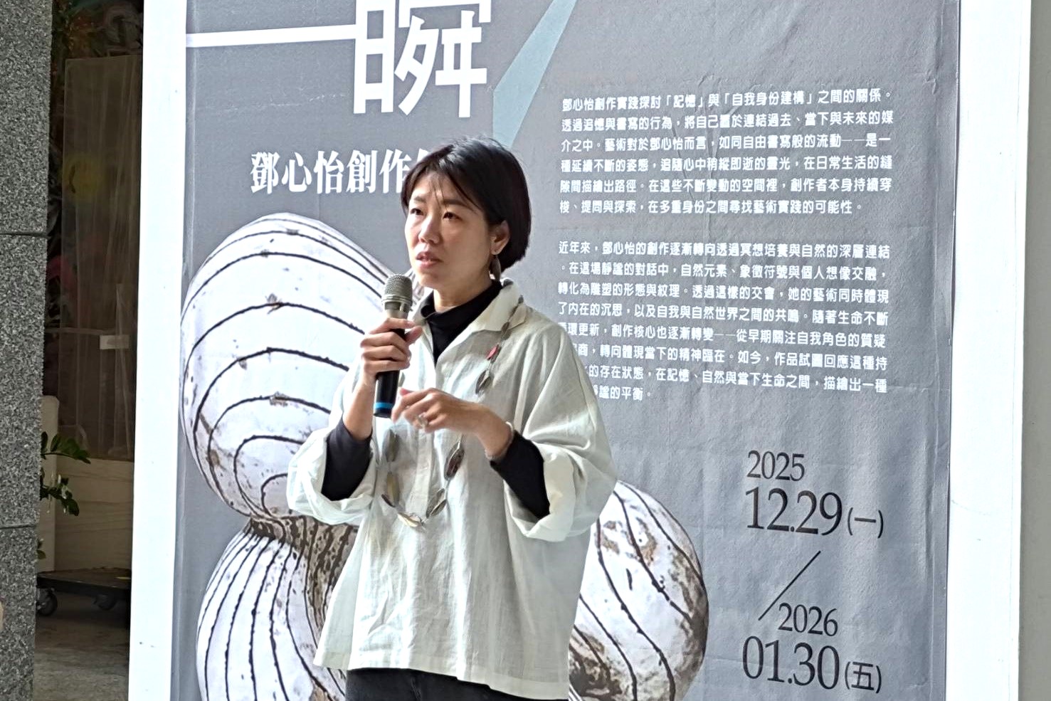 國立虎尾科技大學藝術中心12/30(二)舉行藝術家鄧心怡全新個展《一瞬》開幕茶會。此次展出逾30件陶瓷雕塑與陶瓷繪畫作品,藝術家透過細膩且內斂的視覺語彙,探討時間、記憶與自我身份建構之間的命題。