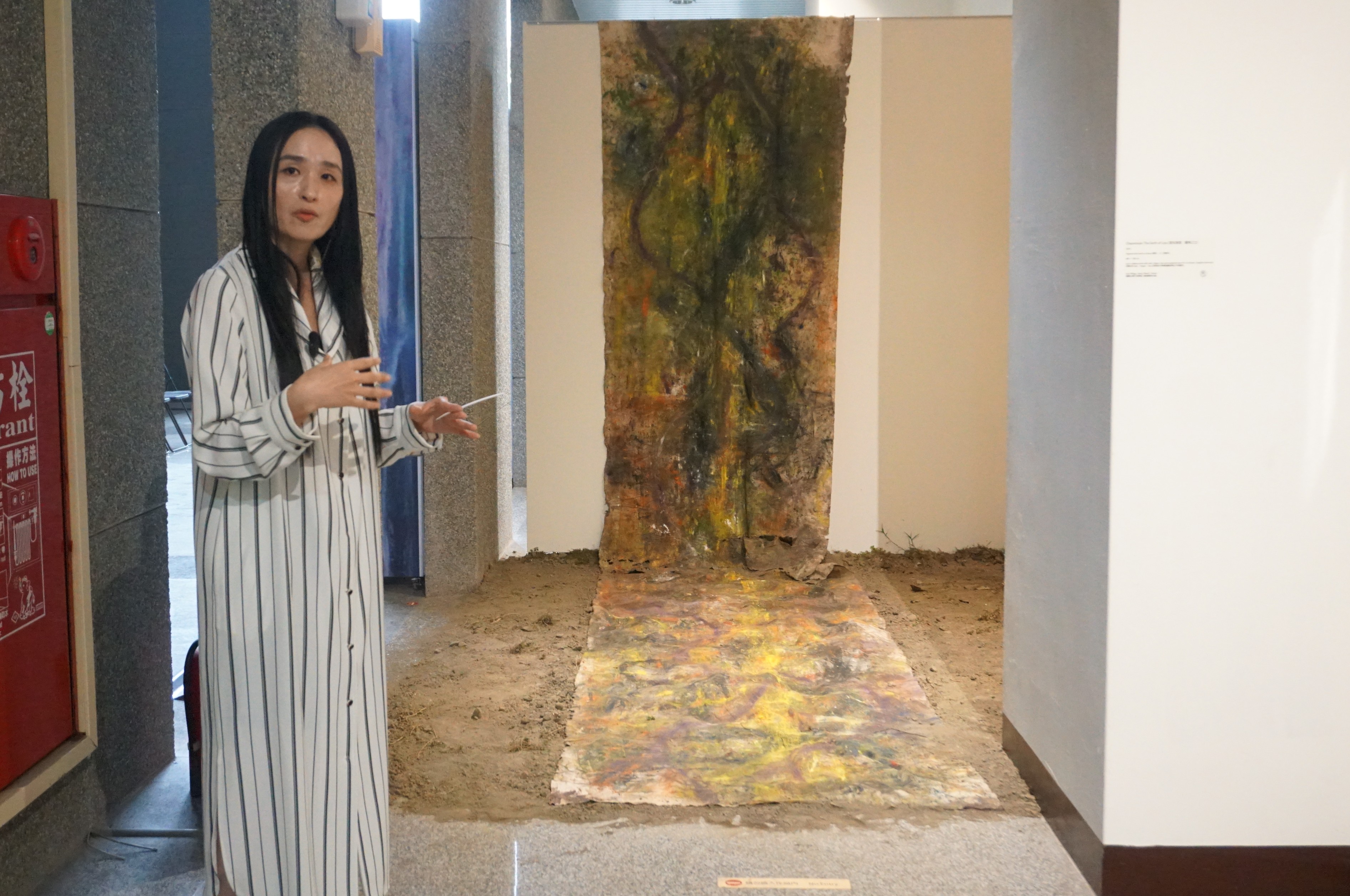 她進一步指出,即使是礦物顏料等看似無機的材料,在創作過程中仍能感受到其所蘊含的能量與生命性,因此創作不只是人對作品的塑造,也是以有生命的方式重新感受外在世界。