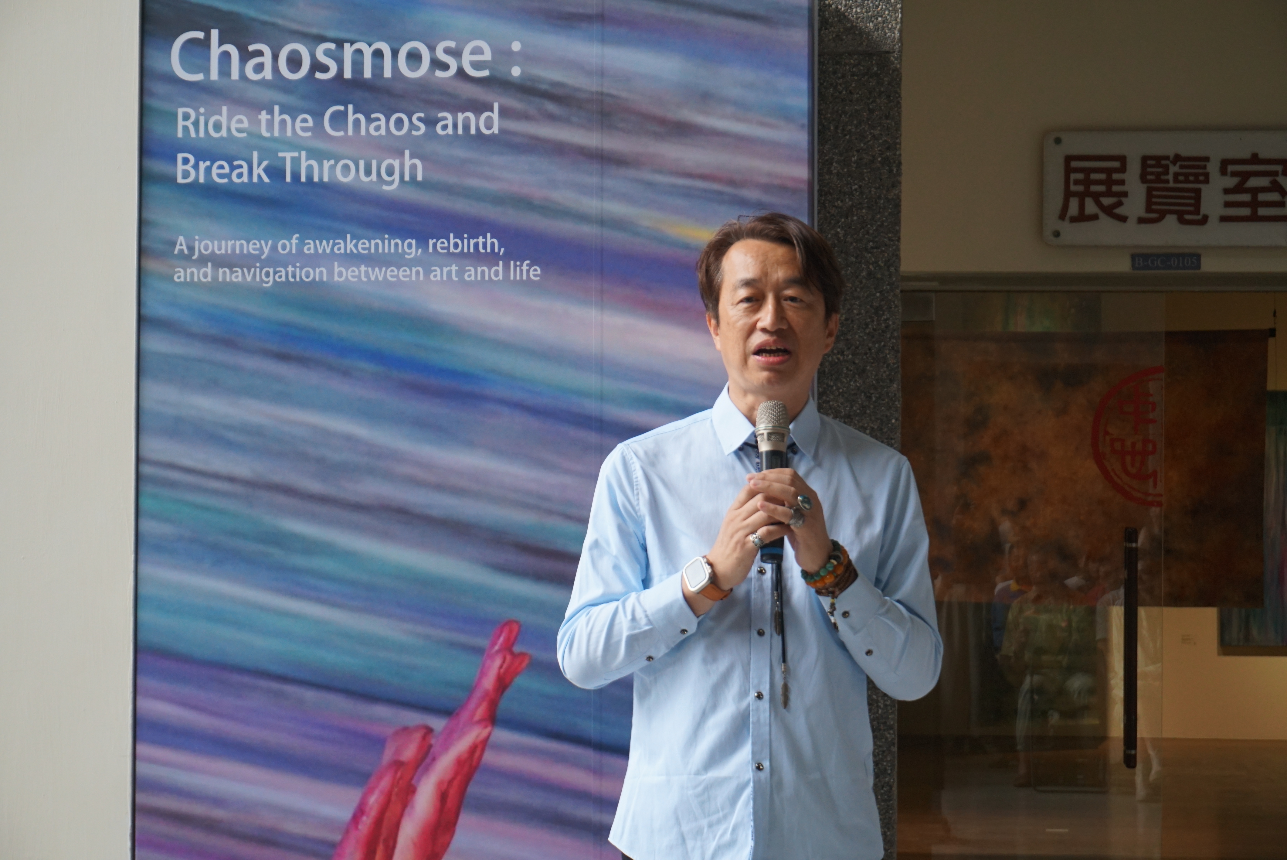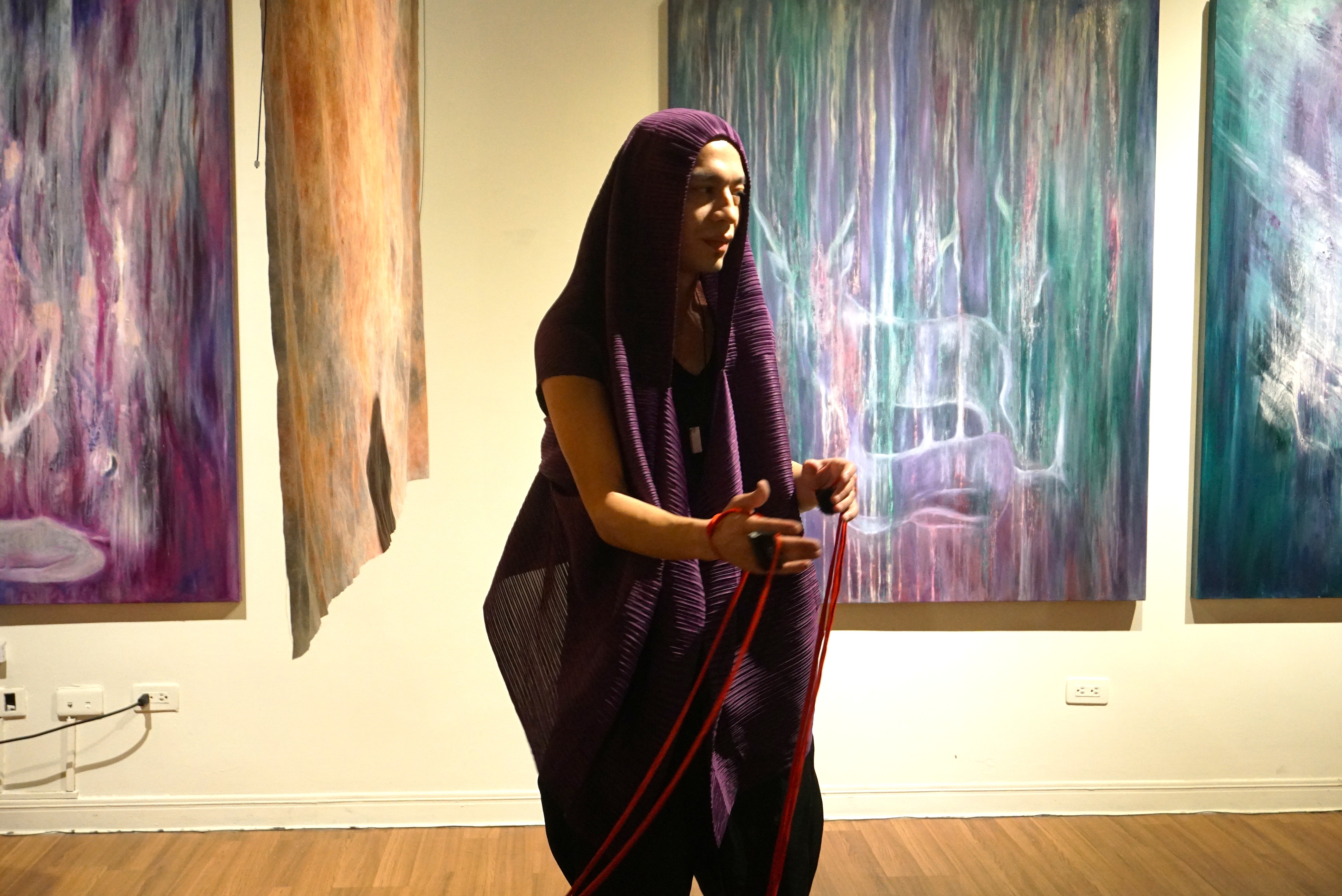 國立虎尾科技大學推出韓國跨領域藝術家Lynn Hyeong(邢隣)個展「Chaosmose《渾沌秩序》:乘著渾沌,破繭而出」,並於4/24(五)舉行開幕式。展覽以複合媒材、油彩、香氣與聲音交織多重感官經驗,帶領觀者走入沉浸式感知旅程。現場並邀請法籍台裔聲音藝術家Aloïs Yang(楊博宇)演出,以聲音回應作品與空間,進一步豐富展覽的跨感官層次。