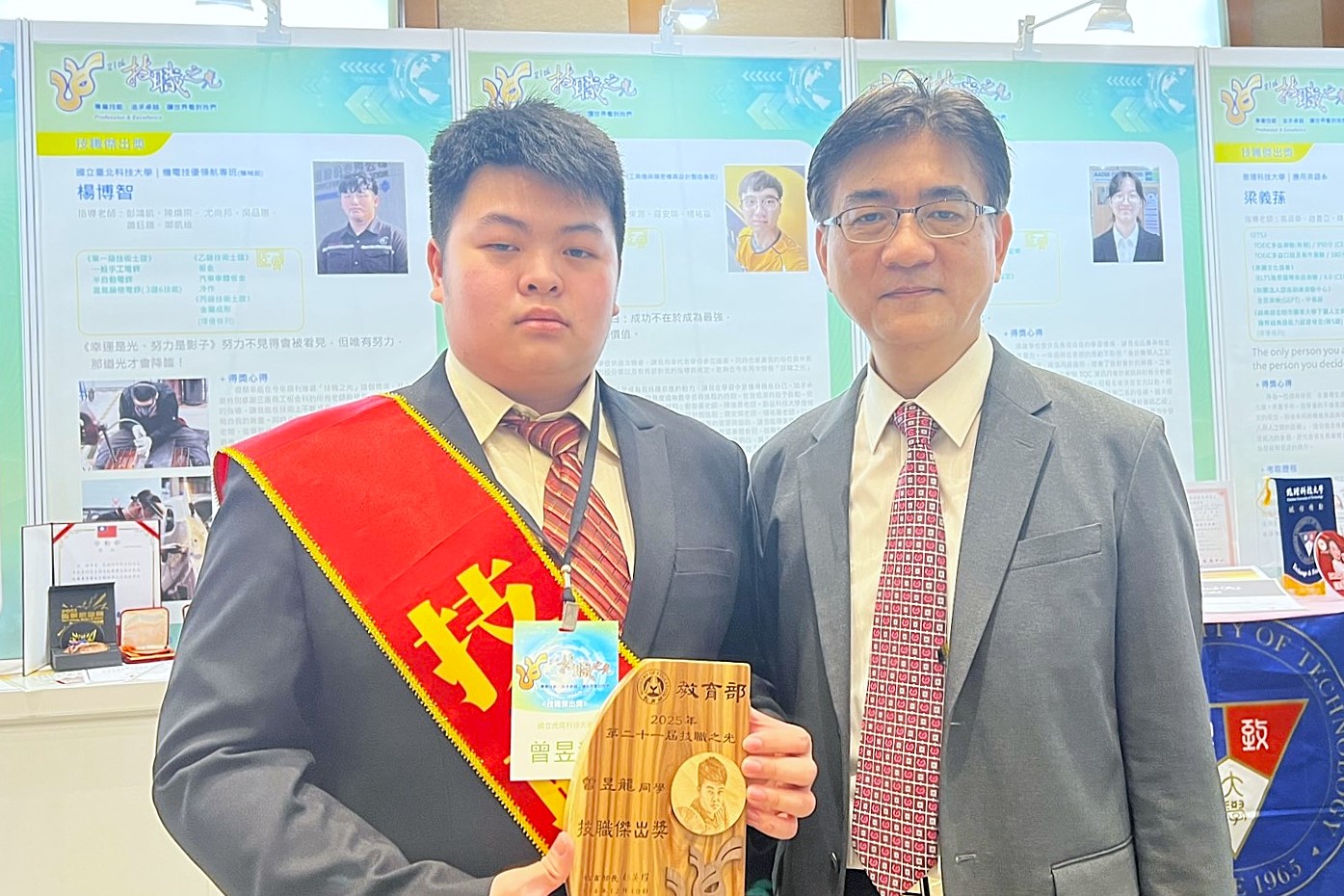 「技職傑出獎」聚焦學生在發明創新、專業證照及其他具代表性成果,強調與所學專業及產業需求的高度連結。本屆虎科大獲獎學生包括機械與電腦輔助工程學系曾昱龍、鄒瀚庭,以及自動化工程學系許壬瀧,三人皆於在學期間積極精進專業技能,考取多張乙級專業證照,展現精密製造與智慧機械領域的實務能力。