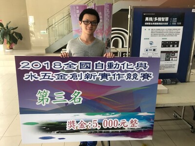 賀!資工系許永和老師帶領柯富升、李彥賢同學獲2018全國自動化與水五金創新實作競賽第三名