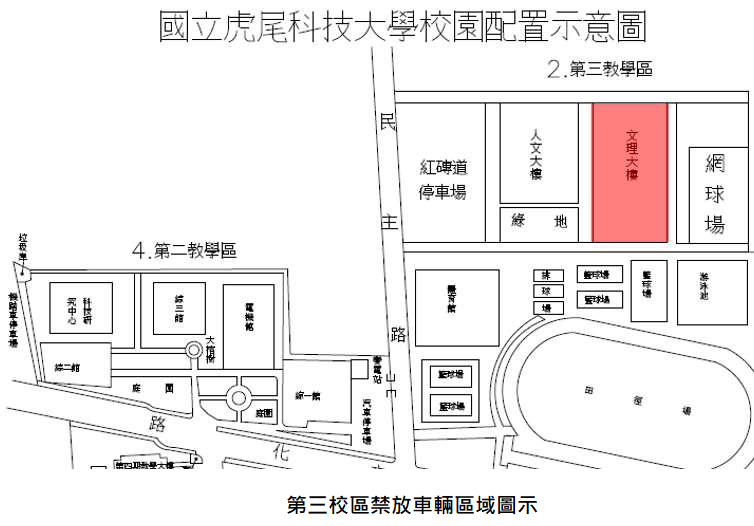 因應本校「文理暨管理大樓裝設防鴿隱形鐵窗」吊車作業之需要,於下列期間及區域將暫時禁放車輛,並請勿於施工區域周圍逗留。