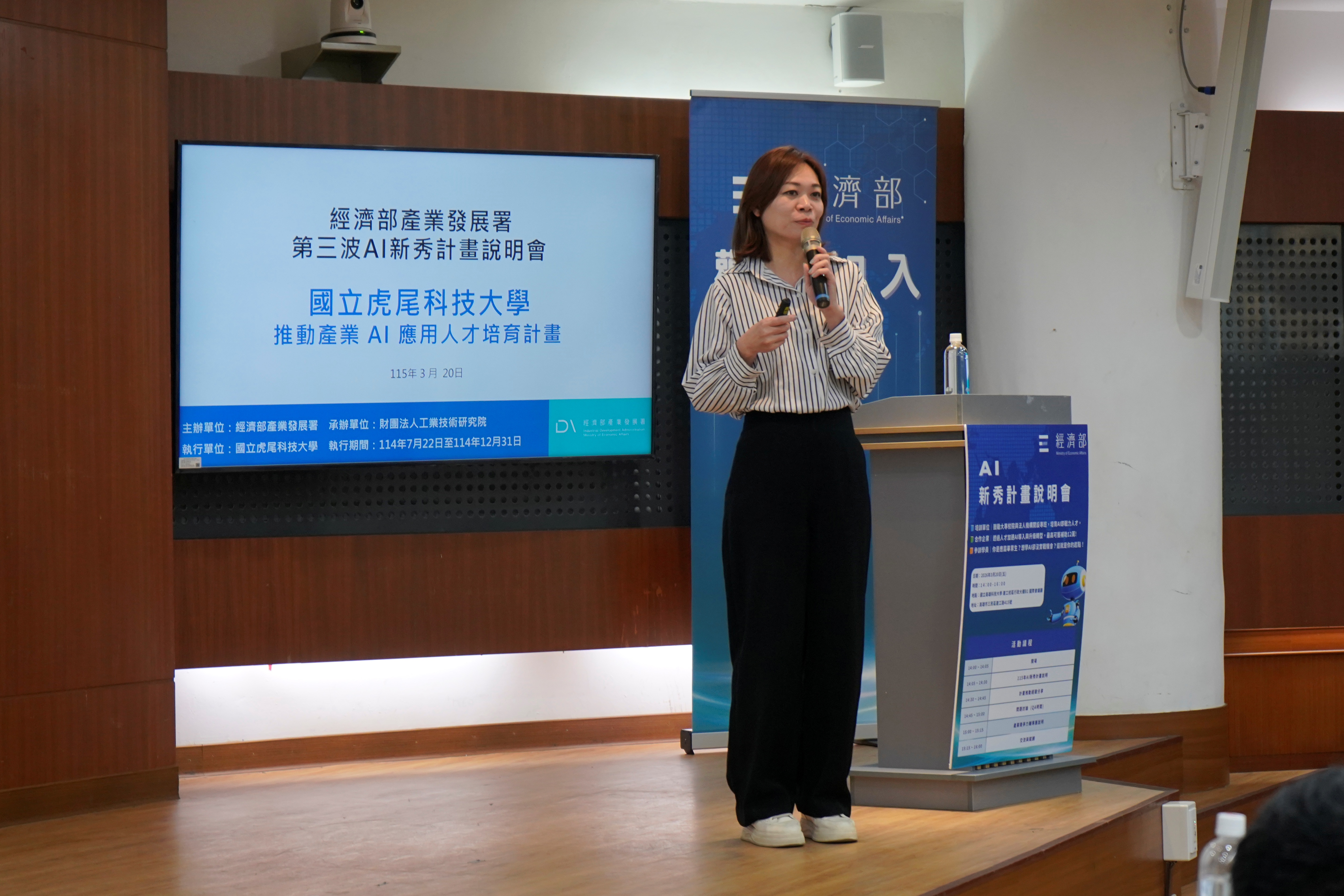 虎尾科大為「AI新秀計畫」首批四所大學之一,該校「推動產業 AI 應用人才培育計畫」計畫主持人兼「無人機AI賦能人才培育學分專班」導師的助理教授張逸品博士,日前受邀於115年經濟部AI新秀計畫南區說明會,分享該校推動計畫的經驗與心得。張逸品表示,虎科大「AI新秀計畫」所開辦的「無人機AI賦能人才培育學分專班」,招生對象:以本科生為主,上課時數須360小時以上,名額40人,每位錄取學員核發獎助金達20萬 。專班的重點在於:一、培育AI+無人機跨域實務人才,強化學員於人工智慧與無人機技術領域之整合應用能力,培養可直接投入產業的實務型人才,強化學員實作與場域部署能力,打造AI即戰力人才。二、強化場域實作與實務技術應用能力:透過任務導向教學與實作場域操作,培養學員掌握AI演算法、影像辨識、自主導航等最新技術,具備現場部署AI模型與無人機系統的即戰力及解決問題能力。三、對接產業需求與推動就業媒合:依據業界需求設計課程,結訓後媒合無人機與智慧製造相關產業,加速技術落地。